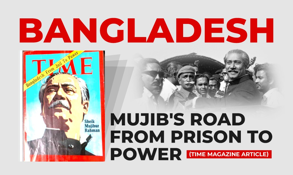 Shamsad Mortuza: On January 17, 1972, Sheikh Mujibur Rahman was featured on the cover of Time magazine. The cover illustration used a yellow diagonal label that cuts across the magazine's iconic red title "TIME" to write: "Bangladesh: From Jail to Power". The image of a bold Sheikh Mujib donning a black prince coat with a splash of white collar...