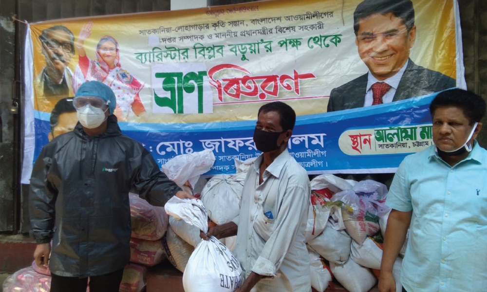 চট্টগ্রাম নগরীর বিভিন্ন এলাকায় কর্মহীন পরিবারের মাঝে ত্রাণ বিতরণ করেন শিক্ষা উপমন্ত্রী। যারা লোকলজ্জার ভয়ে ত্রাণের কথা বলতে পারেন না, তাদের জন্য ‘জরুরী সেবা নাম্বার’ ০১৩১৮৩২৬০১৬ চালু করেছেন তিনি। নগরীর জিইসি, আগ্রাবাদ ও জামাল খান ওয়ার্ডের দুস্থ ও খেটে খাওয়া মানুষের মাঝে নিজ হাতে ত্রাণ তুলে দিয়েছেন শিক্ষা উপমন্ত্রী এবং চট্টগ্রামের ফিল্ড হাসপাতালে কর্মরত স্বাস্থ্যকর্মী ও ডাক্তারদের জন্য ২ হাজার সার্জিকাল মাস্ক দিয়েছেন তিনি। নগরীর বায়েজিদ বোস্তামী এলাকায় আওয়ামী লীগের কেন্দ্রীয় কমিটির দপ্তর সম্পাদকের পক্ষে এলাকার বিভিন্ন স্থানে দুস্থ মানুষদের কাছে ত্রাণ পৌঁছে দিচ্ছেন দলীয় নেতাকর্মীরা। চন্দনাইশে মাননীয় প্রধানমন্ত্রীর বিশেষ সহকারি ও বাংলাদেশ আওয়ামী লীগের কেন্দ্রীয় দপ্তর সম্পাদকের ব্যক্তিগত অর্থায়নে ৩০ হাজার মানুষের মাঝে ইফতার বিতরণ করা হয়েছে।সাতকানিয়া-লোহাগাড়ায় ৩১০০ কর্মহীন ও অসহায় মানুষের মাঝে ত্রাণ সামগ্রী পৌঁছে দেন বাংলাদেশ আওয়ামী লীগের দপ্তর সম্পাদক। সাতকানিয়া-লোহাগাড়ায় ৬০০০ পরিবারের কাছে ইফতার ও সেহরি সামগ্রী পৌঁছে দিয়েছেন কেন্দ্রীয় আওয়ামী লীগের উপ-প্রচার ও প্রকাশনা সম্পাদক। নিম্ন আয় ও দিনমজুর অসহায় ১ হাজার পরিবারের মাঝে খাদ্য সহায়ত বিতরণ করেছেন আওয়ামী লীগের ত্রাণ ও সমাজকল্যাণ উপ কমিটির সদস্য। হটলাইনের মাধ্যমে প্রাপ্ত ৪১৩২ জনের ঘরে ঘরে ত্রাণ সামগ্রী পৌঁছে দিচ্ছেন চট্টগ্রাম-৩(সন্দ্বীপ) আসনের সাংসদ। লকডাউনে কর্মহীন হয়ে পড়া চট্টগ্রামের ফটিকছড়ি উপজেলার ২২ শতাধিক হতদরিদ্র-দিনমজুর ও অসহায় পরিবারকে ইফতার সামগ্রীসহ ত্রাণ সহায়তা দিলেন সংরক্ষিত মহিলা আসনের সংসদ সদস্য।