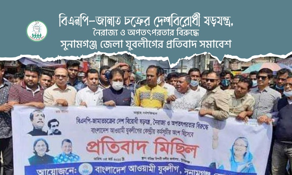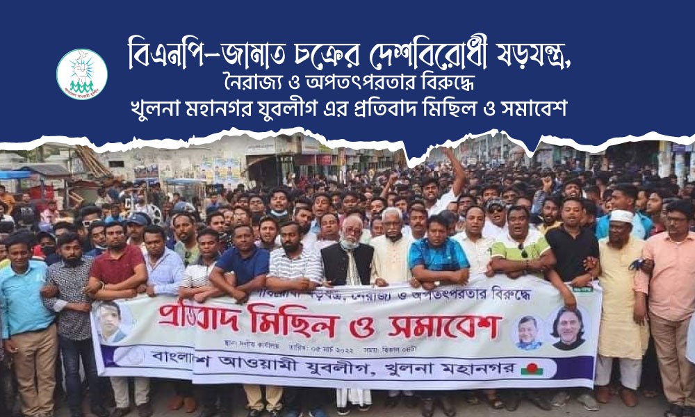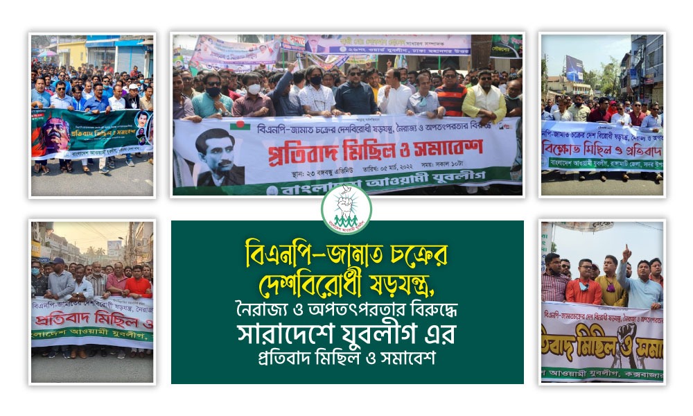 বিএনপি-জামাত চক্রের দেশবিরোধী অপতৎপরতার বিরুদ্ধে সারাদেশে যুবলীগ এর প্রতিবাদ মিছিল