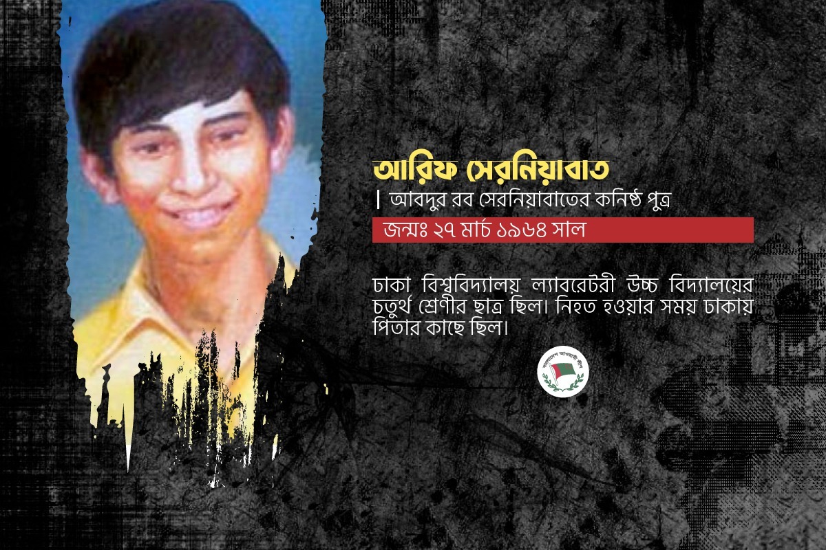 আরিফ সেরনিয়াবাত আবদুর রব সেরনিয়াবাতের কনিষ্ঠ পুত্র জন্মঃ ২৭ মার্চ ১৯৬৪ সাল ঢাকা বিশ্ববিদ্যালয় ল্যাবরেটরী উচ্চ বিদ্যালয়ের চতুর্থ শ্রেণীর ছাত্র ছিল। নিহত হওয়ার সময় ঢাকায় পিতার কাছে ছিল।