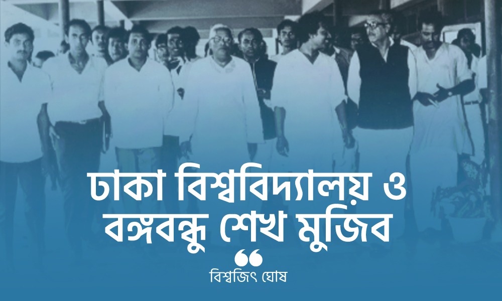 বিশ্বজিত ঘোষঃ পূর্ববাংলার পশ্চাৎপদ মুসলিম জনগোষ্ঠীকে উচ্চশিক্ষায় আকৃষ্ট করা এবং বাংলায় ব্রিটিশ শাসন ব্যবস্থা সুদৃঢ় করার উদ্দেশ্যে ১৯২১ খ্রিস্টাব্দে প্রতিষ্ঠিত হয় ঢাকা বিশ্ববিদ্যালয়। যুক্তরাজ্যের অক্সফোর্ড বিশ্ববিদ্যালয়ের আদর্শে পরিকল্পিত এই বিশ্ববিদ্যালয় প্রতিষ্ঠার পর থেকেই বহু গুণী মানুষের সান্নিধ্যে ধন্য হয়ে ওঠে। হাজার বছরের শ্রেষ্ঠতম বাঙালি, বাংলাদেশের স্বাধীনতার মহান স্থপতি জাত...