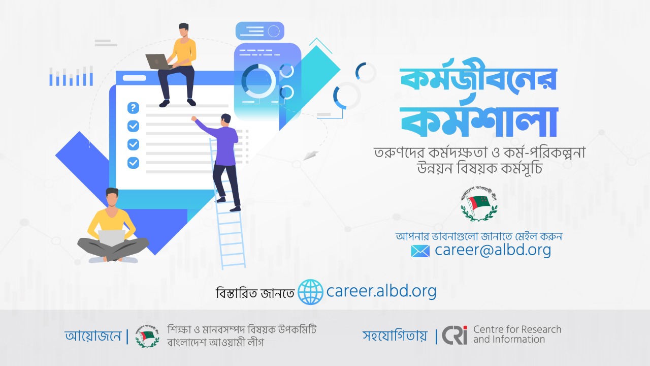 তরুণ প্রজন্মকে ক্যারিয়ার সচেতন করতে বাংলাদেশ আওয়ামী লীগ এর শিক্ষা ও মানবসম্পদ উপ-কমিটির উদ্যোগে এবং সেন্টার ফর রিসার্চ এন্ড ইনফরমেশন (সিআরআই) এর সহযোগিতায় ‘কর্মজীবনের কর্মশালা’ শীর্ষক ক্যারিয়ার প্ল্যানিং বিষয়ক কর্মশালা’র আয়োজন করা হচ্ছে। গত ১৫ ফেব্রুয়ারি থেকে শুরু হয়ে ইতোমধ্যে পাঁচটি ব্যাচের প্রাথমিক কার্যক্রম সফলভাবে সম্পন্ন হয়েছে। এরই ধারাবাহিকতায় তর...