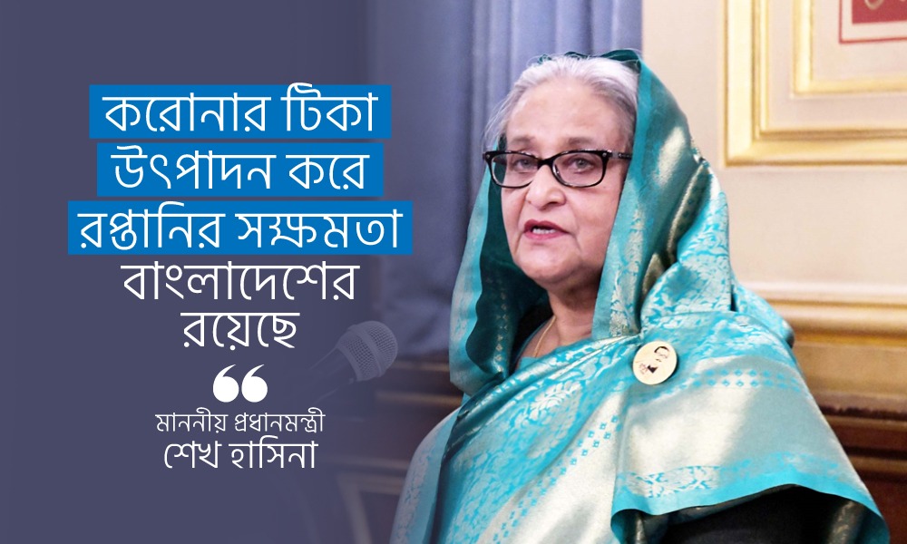 প্রধানমন্ত্রী শেখ হাসিনা বলেছেন, দেশে করোনাভাইরাসের টিকা উৎপাদন করে অন্য দেশকে দেওয়ার সক্ষমতা বাংলাদেশের আছে। সোমবার সংসদের সাধারণ আলোচনায় সাম্প্রতিক বিদেশ সফরের কথা তুলে ধরে সরকার প্রধান বলেন, “আজকে করোনাভাইরাস মোকাবেলায় আমাদের যে সাফল্য, আন্তর্জাতিক স্বীকৃতি পেয়েছে। আমি এটাও বলে এসেছি, আমরা নিজেরা ভ্যাকসিন তৈরি করতে চাই। ভ্যাকসিন তৈরি করার যে বাধাগুল...