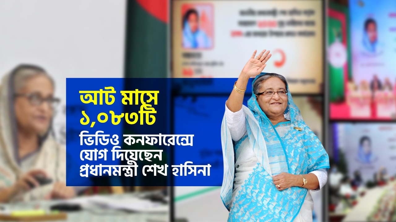 ভিডিও কনফারেন্স বা অনলাইন প্ল্যাটফর্মের মাধ্যমে প্রধানমন্ত্রী শেখ হাসিনার আনুষ্ঠানিক ব্যস্ততা গত বছরের তুলনায় গত ৮ মাসে প্রায় তিনগুণ বেড়েছে। কারণ, কোভিড-১৯ মহামারির ফলে বাংলাদেশকে রাতারাতি সারাসরি বৈঠক বা যোগাযোগের পরিবর্তে তা অনলাইনে বা ভিডিও কনফারেন্সের মাধ্যমে করতে হচ্ছে। পিএমও সচিব মো. তোফাজ্জল হোসেন মিয়া বলেন, প্রধানমন্ত্রী ২০২০ সালে যেখানে ৪৭৫টি ভিডিও কনফারে...