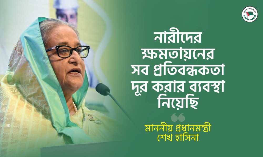 প্রধানমন্ত্রী শেখ হাসিনা বলেছেন, ক্ষমতায়ন না হলে সমাজে নারীর অবস্থার উন্নতি হতো না। আমার সরকার নারী নীতি ২০১১ প্রণয়ন করেছে। নীতির অধীনে, আমরা মূলধারার আর্থ-সামাজিক কর্মকাণ্ডে নারীদের সার্বিক উন্নয়ন এবং সক্রিয় অংশগ্রহণ নিশ্চিত করতে এবং তাদের ক্ষমতায়নের সমস্ত প্রতিবন্ধকতা দূর করার ব্যবস্থা নিয়েছি। সোমবার সকালে ঢাকা সেনানিবাসের আর্মি মাল্টিপারপাস কমপ্লেক্সে ‘আন্তর্জাত...