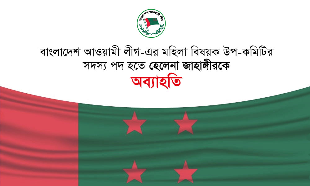 হেলেনা জাহাঙ্গীর বাংলাদেশ আওয়ামী লীগ-এর মহিলা বিষয়ক উপ-কমিটির সদস্য ছিলেন। কিন্তু সামাজিক যোগাযোগ মাধ্যমে প্রচারিত তার সাম্প্রতিক কর্মকাণ্ড সংগঠনের নীতি বহির্ভূত হওয়ায় বাংলাদেশ আওয়ামী লীগ-এর মহিলা বিষয়ক উপ-কমিটির সদস্য পদ হতে তাকে অব্যাহতি প্রদান করা হয়েছে। ধন্যবাদসহমেহের আফরোজ চুমকি এমপিসদস্য সচিবমহিলা বিষয়ক উপ-কমিটিবাংলাদেশ আওয়ামী লীগ। তারিখ : ২৫ জুলাই ২০২...